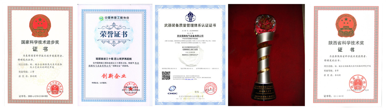 西安強微電氣設備有限公司專門從事鋁、鎂、鈦合金微弧氧化工藝技術開發、外協加工及電源制造。生產基地位于渭南3D打印產業培育基地院內,車間面積近3000平方米。為了滿足不同客戶產品性能的多樣性需求,公司研制開發并定型了輸出電流分別為10A、30A、50A、100A、200A、300A、500A、750A及1000A,輸出電壓為750V鋁、鈦合金以及輸出電壓為550V鎂合金的單脈沖、非對稱與對稱雙脈沖微弧氧化電源。截至2024年12月31日,公司已為105家內外資企業、科研院所以及大專院校提供了121套不同型號微弧氧化電源(生產線),并與臺資巨騰、華碩等多家大型公司簽訂了微弧氧化技術開發協議。